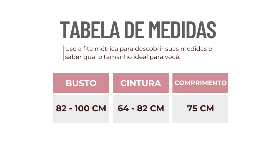 Atenção! Fazemos as métricas com a peça fora do corpo e sem esticá-la.