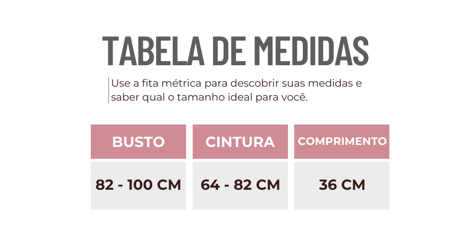 Atenção! Fazemos as métricas com a peça fora do corpo e sem esticá-la.