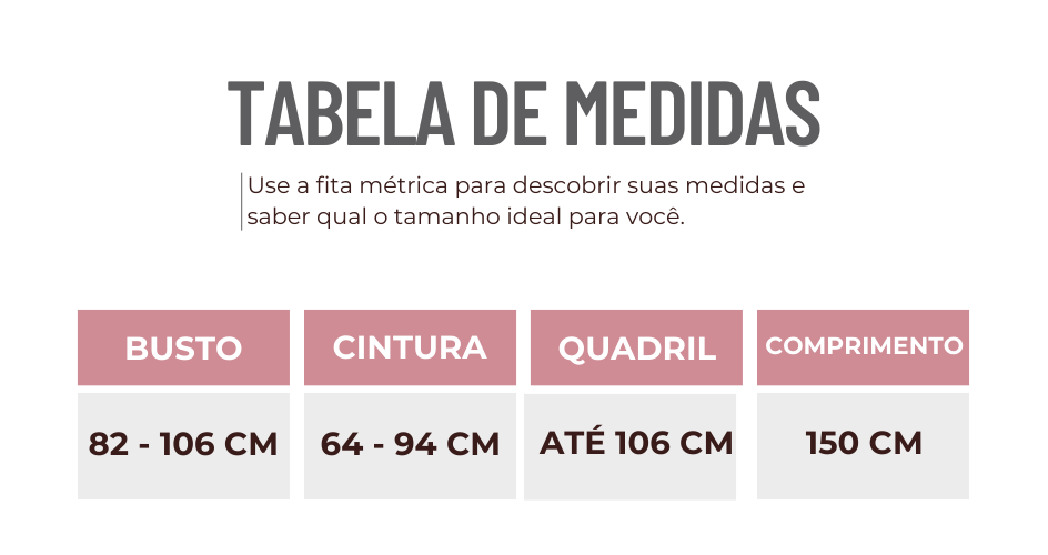 Atenção! Fazemos as métricas com a peça fora do corpo e sem esticá-la.