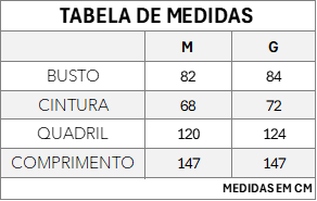 Atenção! Fazemos as métricas com a peça fora do corpo e sem esticá-la.