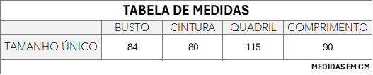 Atenção! Fazemos as métricas com a peça fora do corpo e sem esticá-la.
