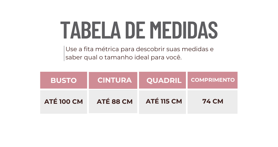 Atenção! Fazemos as métricas com a peça fora do corpo e sem esticá-la.