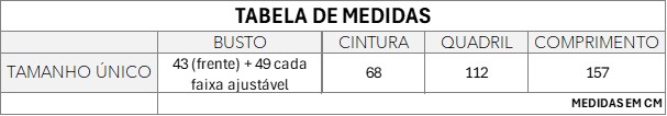 Atenção! Fazemos as métricas com a peça fora do corpo e sem esticá-la.