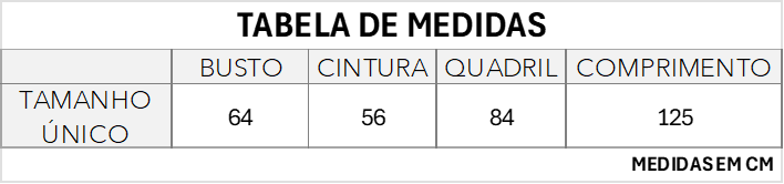 Atenção! Fazemos as métricas com a peça fora do corpo e sem esticá-la.
